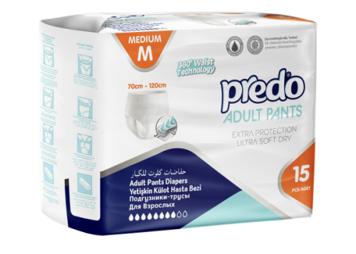 Подгузники-трусы Predo Medium, объем талии 70-120 см, 15 шт.