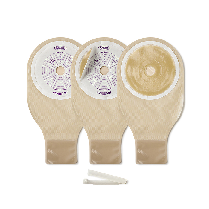 Непрозрачные однокомпонентные дренируемые калоприемники АБУЦЕЛ-ВТ №5 с диаметром 20-80 мм изготовлены из многослойного материала, который надежно удерживает содержимое и препятствует распространению неприятного запаха. Изделие легко очищается — для этого есть отводное отверстие с надежным и прочным зажимом. Сделать это может сам пациент. Материал, прилегающий к коже, мягкий, деликатный и нежный, что позволяет снизить риск раздражений. При отделении пластины во время замены калоприемника следует действовать аккуратно, придерживая кожу.