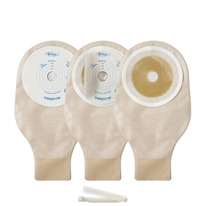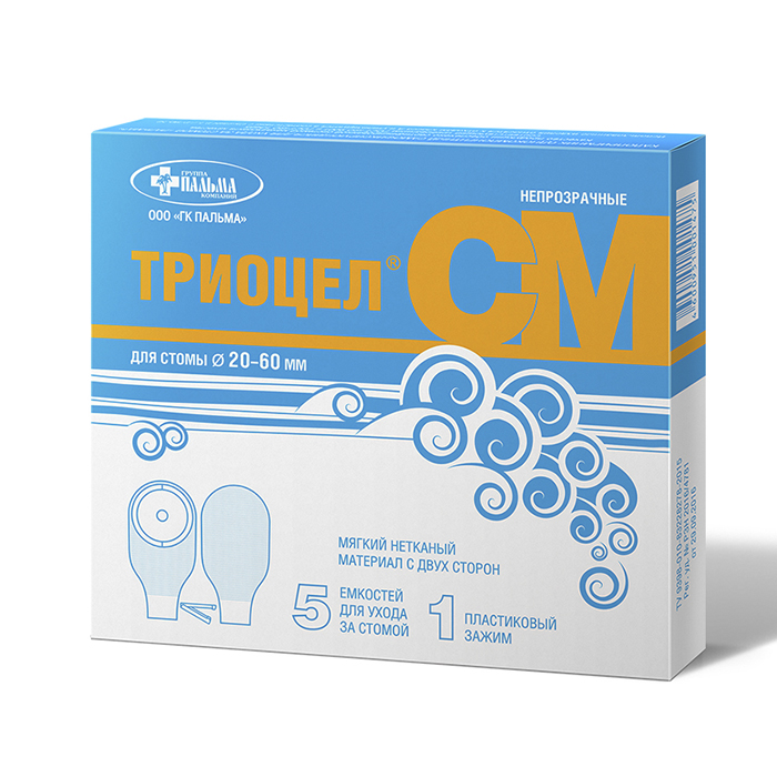 Калоприемники ТРИОЦЕЛ-СМ №5 с диаметром 20-60 изготовлены из нескольких слоев пленки, которая держит запах и жидкость. Однокомпонентные изделия непрозрачные, что делает их использование более комфортным. Приклеиваются при помощи пластины со специальным адгезивом. Клеевой слой не раздражает кожу, оказывает заживляющее действие. Подложка мешка мягкая, приятная, нейтрально воздействует на кожу.