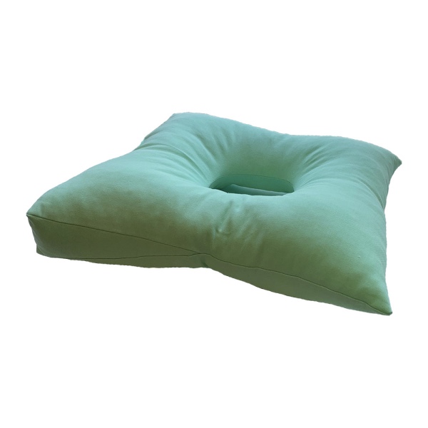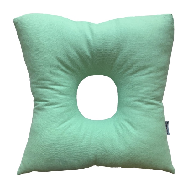 Противопролежневая подушка под ухо предназначена для профилактики возникновения пролежней, а также предупреждения их дальнейшего развития при уже имеющихся опрелостях, повреждениях кожного покрова в этой зоне у лежачих больных. Использование подушки показано в уходе за пациентами, вынужденными соблюдать длительный постельный режим вследствие заболеваний позвоночника, нижних конечностей, неврологических расстройств, перенесенных инсультов. Профилактика пролежней осуществляется за счет того, что ухо находится в отверстии подушки, тем самым уменьшается давление на кожу вокруг него, улучшается кровообращение в этой области.