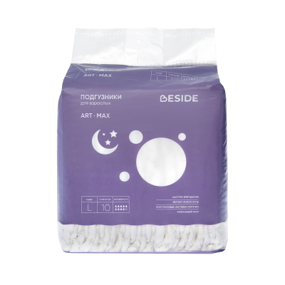 Подгузники для взрослых Beside Art Max Large (ночные), объем талии 100-135 см, 10 шт.