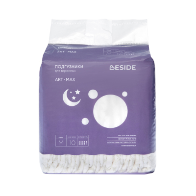 Подгузники для взрослых Beside Art Max Medium (ночные), объем талии 80-120 см, 10 шт.