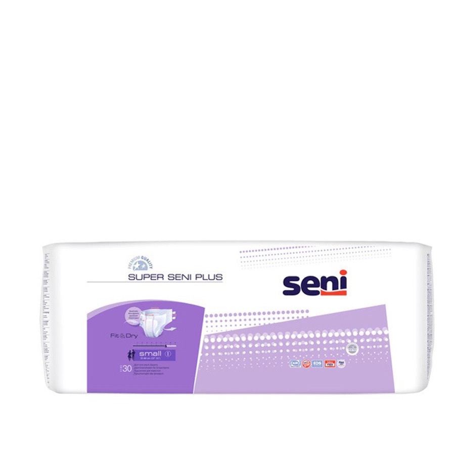 Модель Super Seni Plus Small предназначена для больных, страдающих тяжелой формой недержания. Изделие впитывает большой объем жидкости, превращает ее в гель и эффективно удерживает внутри впитывающего слоя. Подгузник имеет внешний слой, пропускающий воздух. Кожа остается сухой, устраняется риск возникновения опрелостей и пролежней. Изделия походят для ночного использования. Двойной слой с антибактериальным абсорбентом имеет высокую степень впитывания.