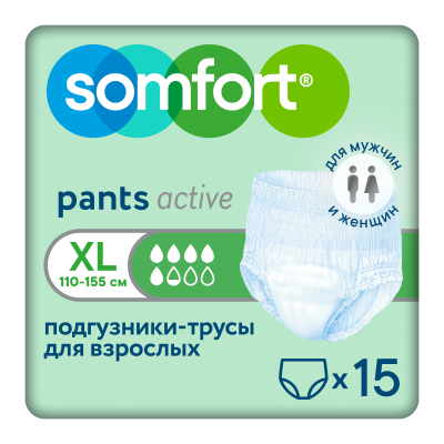 Подгузники-трусы Somfort Pants Active Normal Extra Large, объем талии 110-155 см, 15 шт.