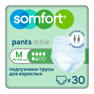 Подгузники-трусы Somfort Pants Active Normal Medium, объем талии 80-105 см, 30 шт.