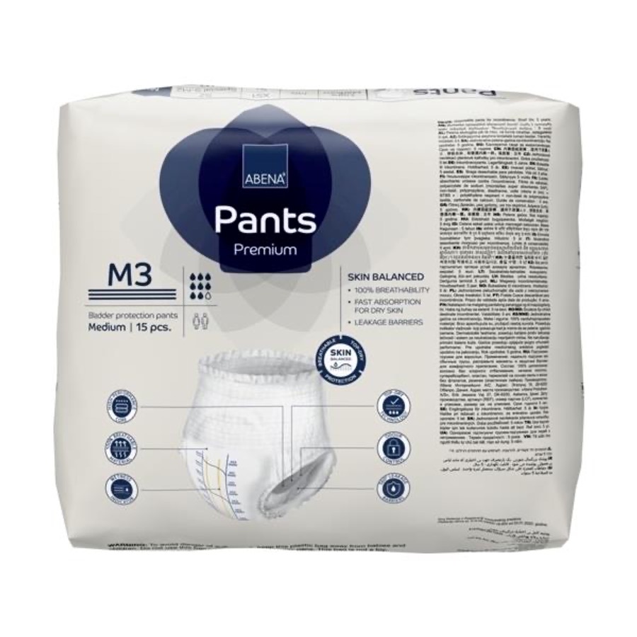 Памперсы-трусы Abena Pants Premium M3 рассчитаны на объем талии 80-110 см, уровень впитываемости 8 капель (2400 мл). Вы можете купить изделия в нашем интернет-магазине с быстрой доставкой по Москве. В одной упаковке 15 штук подгузников.