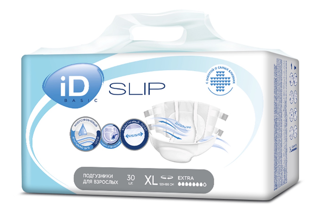 Мягкие подгузники iD Slip Basic Extra Large с эластичными элементами на поясе (сзади) плотно садятся на фигуру, не вызывают раздражения, аллергии и дискомфорта, не сдавливают. Эти изделия на 7 капель подходят людям с талией 120—166 см, обеспечивают стопроцентный комфорт и надежное запирание влаги, а также нежелательного запаха.