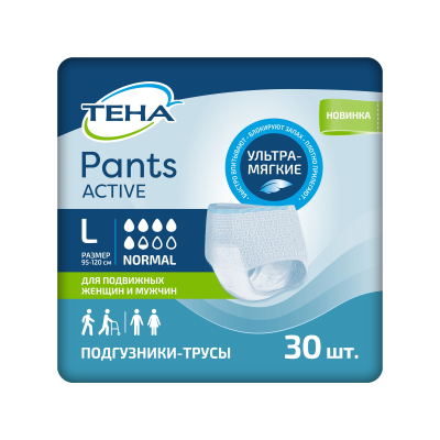 Подгузники-трусы Tena Pants Active Normal Large, объем талии 95-120 см, 30 шт.
