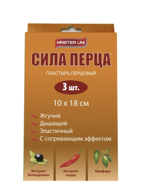 Перцовый пластырь MASTER UNI "Сила Перца", 10 х 18 см, перфорированный, 3 шт.