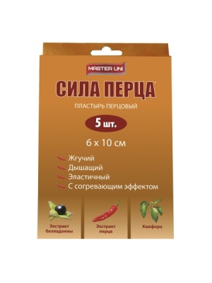 Перцовый пластырь MASTER UNI "Сила Перца", 6 х 10 см, перфорированный, 5 шт.