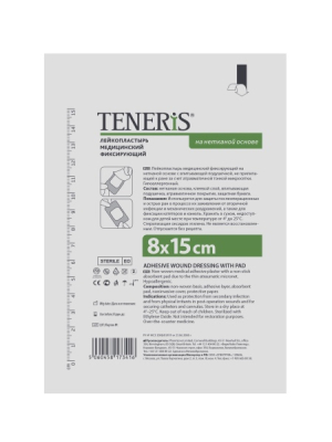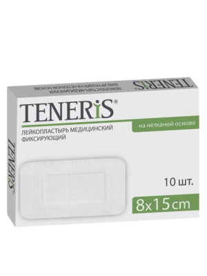 Фиксирующий лейкопластырь TENERIS, на нетканой основе, с впитывающей подушкой, 8 х 15 см, 1шт.