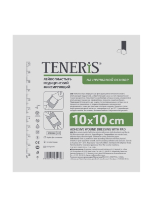 Фиксирующий лейкопластырь TENERIS, на нетканой основе, с впитывающей подушкой, 10 х 10 см, 1шт.