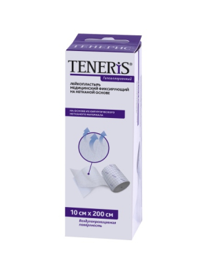 Фиксирующий лейкопластырь Teneris, на нетканой основе, 10 х 200 см, 1шт.
