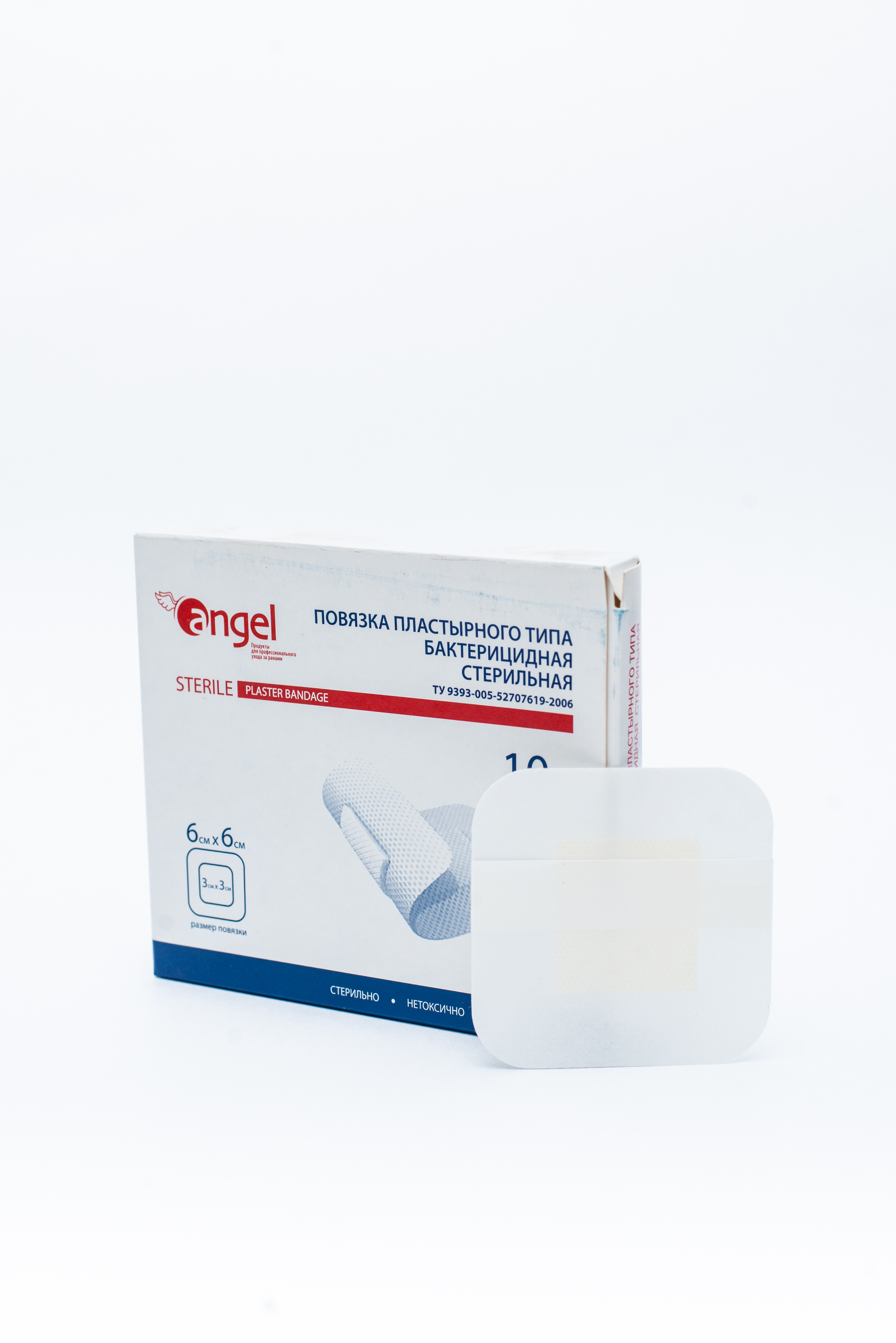 Повязки пластырного типа бактерицидные стерильные Angel, 6x6 см, 10 шт.