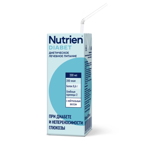 Nutrien® Diabet (Нутриэн®Диабет) – это смесь, которая представляет собой полноценное диетическое питание для людей с непереносимостью глюкозы, сахарным диабетом, проблемами с ЖКТ и рядом других патологий. Обладает нейтральным вкусом, поставляется в тетрапак-упаковках с трубочкой.