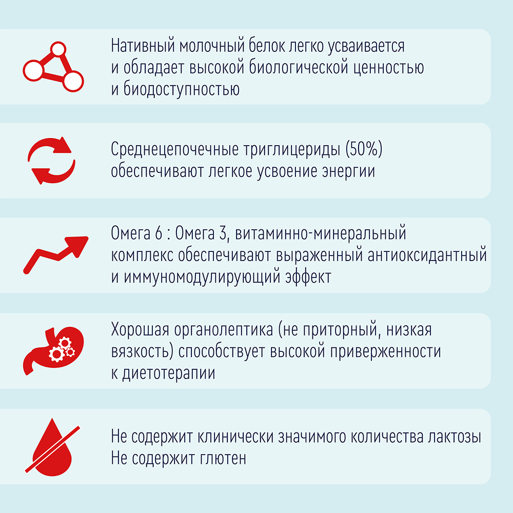 Рекомендуется для употребления при повышенной потребности организма в энергии и белке в следующих случаях: