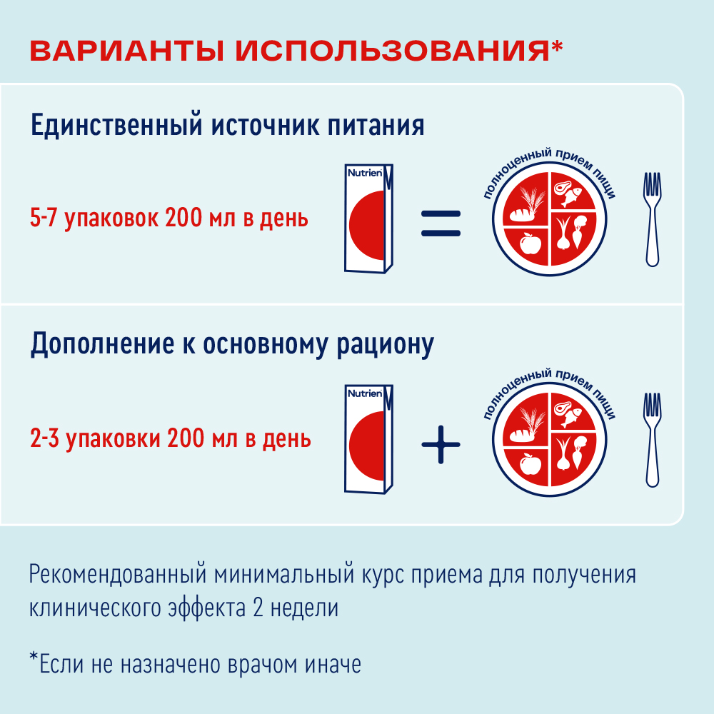 2-3 упаковки Nutrien Standard 200 мл в сутки — дополнительное питание.
