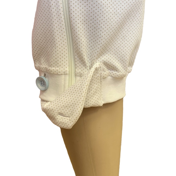 Хлопковый комбинезон одевается через голову. Затем нужно застегнуть пуговицы на манжетах и молнию по боковому. Шов надежно скрыт, поэтому не привлекает внимание, и пациент не сможет разорвать его. Чтобы поменять подгузник, снимать боди не нужно — можно только расстегнуть молнию.