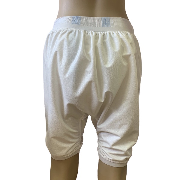 Непромокаемые панталоны размера L (50-52) созданы для защиты постели от протеканий подгузников. Они сделаны из дышащей мембранной ткани, которая пропускает воздух, но задерживает влагу. Внутри они покрыты мягким махровым материалом, а снаружи - прочной полимерной пленкой. Молнии, расположенные на передней стороне штанин, позволяют легко поменять подгузник, не снимая одежду полностью. Когда подгузник протекает, влага остается внутри панталон, а махровая ткань впитывает часть этой влаги, оставляя кожу сухой до замены подгузника.