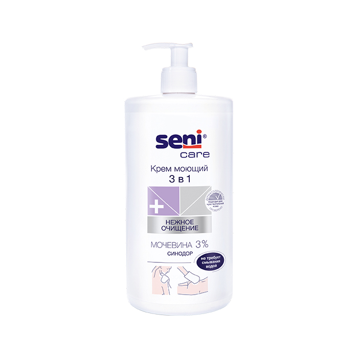 Очищение кожи лежачего пациента с помощью воды и мыла не всегда удобно и правильно. Сухая и раздраженная кожа нуждается в бережном уходе, поэтому лучше выбирать специальные косметические средства. Удобный для использования моющий крем 3 в 1 Seni Care заменяет воду и мыло. После нанесения остатки достаточно удалить салфеткой. Крема хватит надолго, так как он предлагается в объеме 1000 мл.