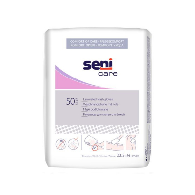 Рукавицы для мытья с водонепроницаемой пленкой SENI CARE, 50 шт.