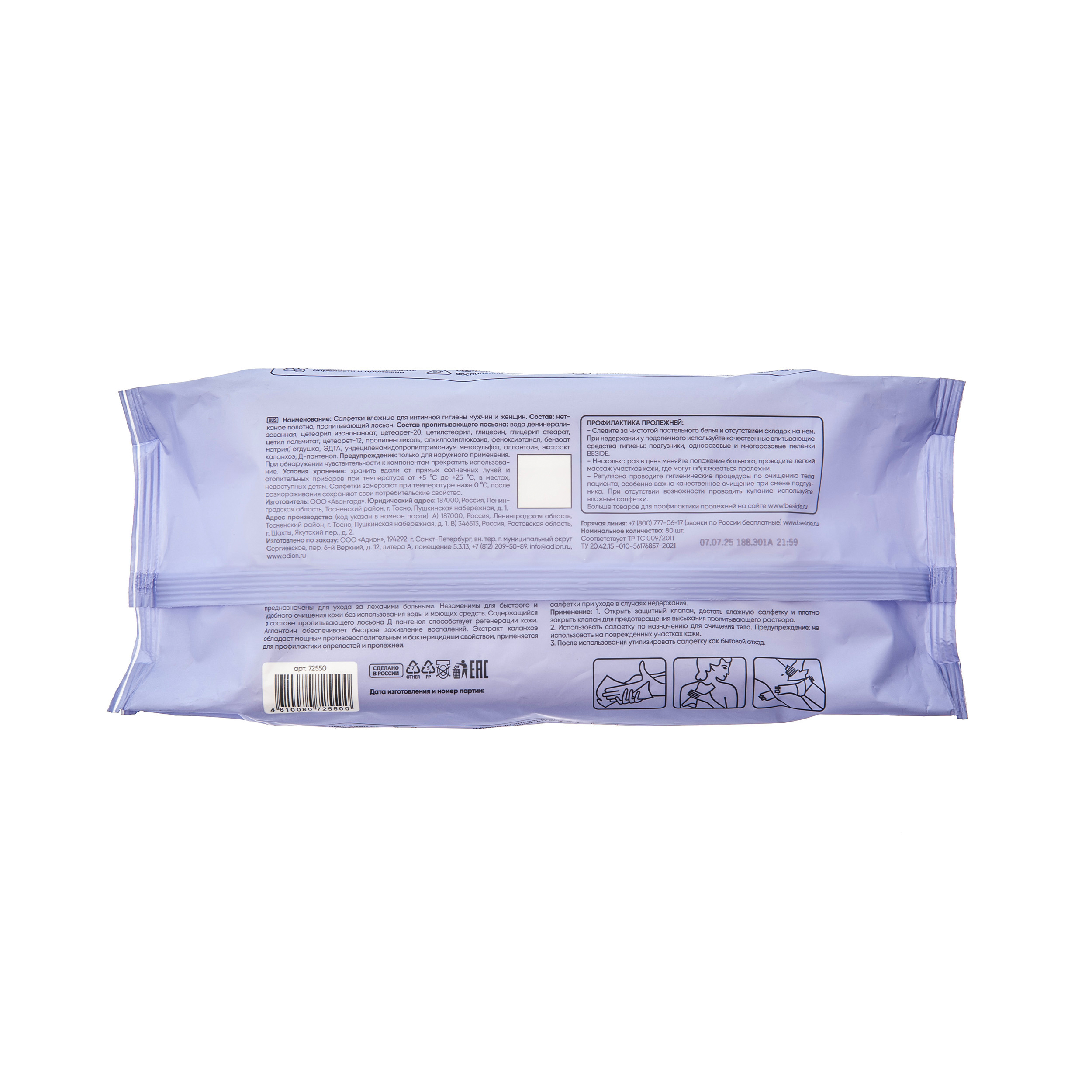 Влажные салфетки для интимной гигиены BESIDE (80 шт.) предназначены специально для заботы о пожилых людях и лежачих больных. Они эффективно предотвращают пролежни и обеспечивают быстрое очищение кожи без использования воды и моющих средств. В состав пропитывающего раствора входит Д-пантенол, который способствует регенерации кожи, делая ее более устойчивой к внешним воздействиям. Салфетки имеют уникальную систему нейтрализации запаха, поэтому станут идеальным выбором для ухода за пациентами с недержанием. Влажные салфетки не содержат спирт, имеют удобный клапан и обеспечивают деликатный уход за интимной гигиеной.