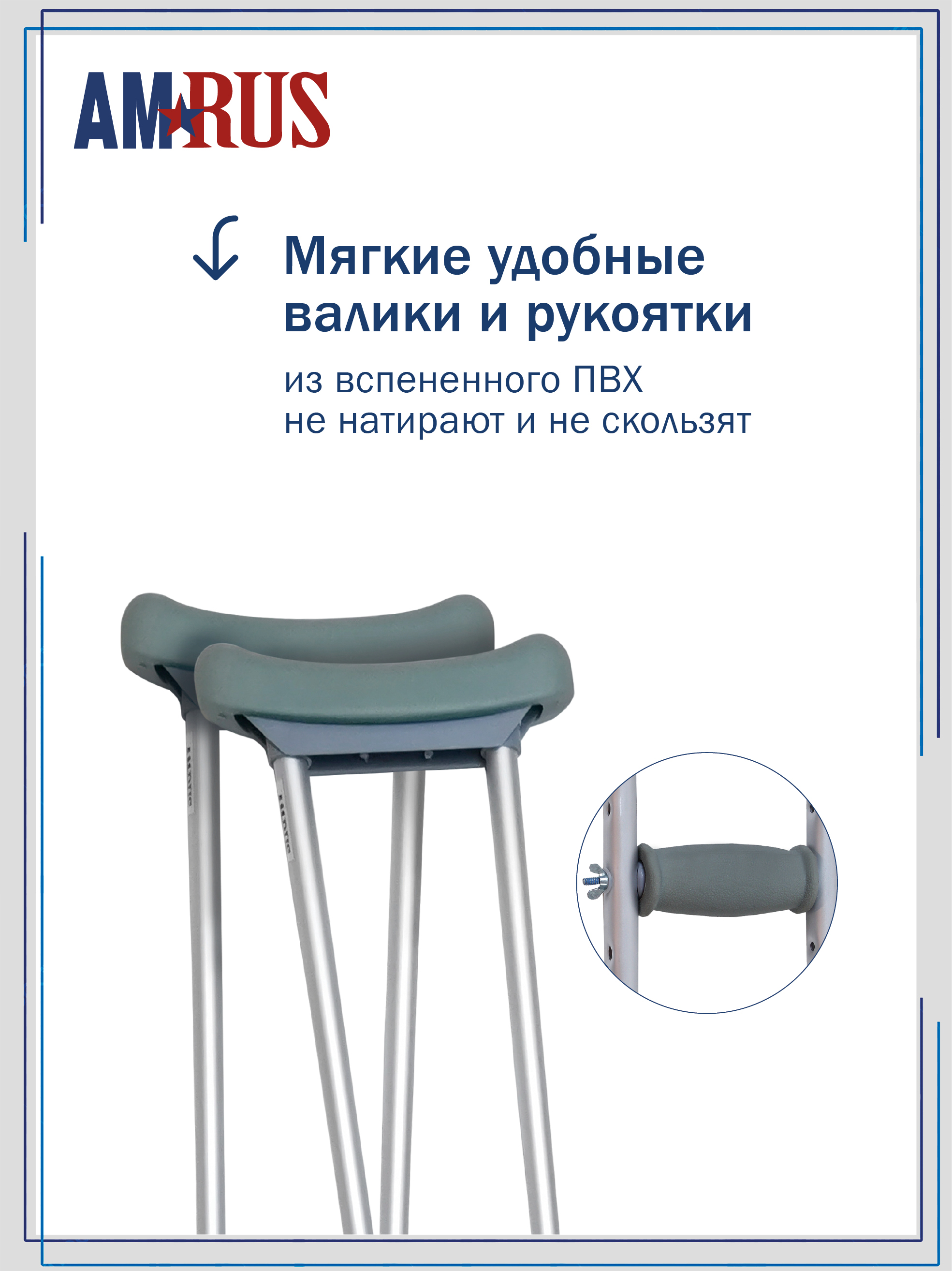 Подмышечный валик и опорная ручка имеют удобную форму, выполнены из вспененного пластика. Гарантия на изделие – 1 год.