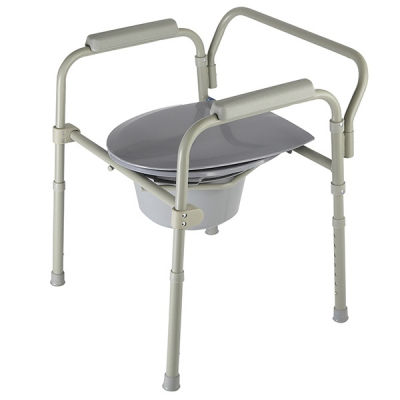 Ведро с крышкой и накладки на поручни пластиковые, их легко обрабатывать дезсредствами. Каркас кресла-туалета складной, не занимает много места при хранении.