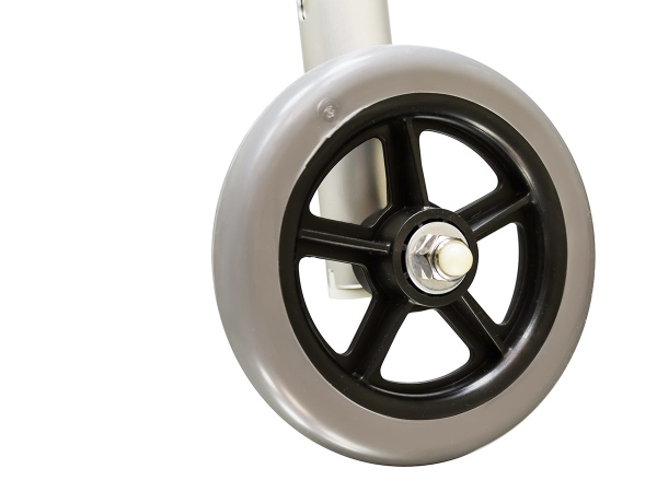 Ходунки цельнолитые, выполнены из сплавов алюминия, весят всего 3 кг, но выдерживают до 100 кг веса. Не подвержены коррозии, легко моются. Телескопическая система имеет шаг регулировки в 2,5 см и 7 положений. Высоту можно увеличить с 81 до 98,5 см.