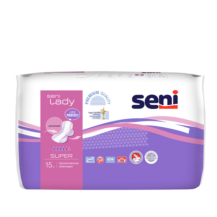 Для лучшей защиты Seni разработаны урологические прокладки Сени Леди Супер для женщин, отличающиеся большей впитывающей поверхностью и специальными боковыми гидрофобными бортиками. Технологии Seni для быстрого и равномерного впитывания (Extra Dry System) и нейтрализации запахов (Odour Stop) в сочетании с большим размерами самой прокладки обеспечивают наиболее эффективную защиту от протекания и надолго дарят ощущение комфорта и спокойствия.