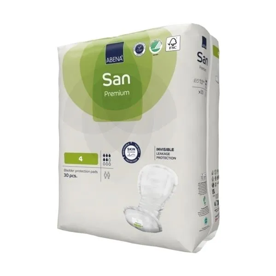 Прокладки для взрослых Abena San Premium 4 с подойдут людям с умеренной степенью недержания (5 капель) способны удержать до 800 мл жидкости. Обеспечивают сухость, комфорт использования. Специальные гидрофобные бортики не позволяют жидкости попасть за пределы гигиенического средства. Грамотно подобранный материал позволяет не переживать о распространении неприятных запахов. Изделия отличаются прочностью, при этом не издают лишних звуков, их легко можно спрятать под одеждой.