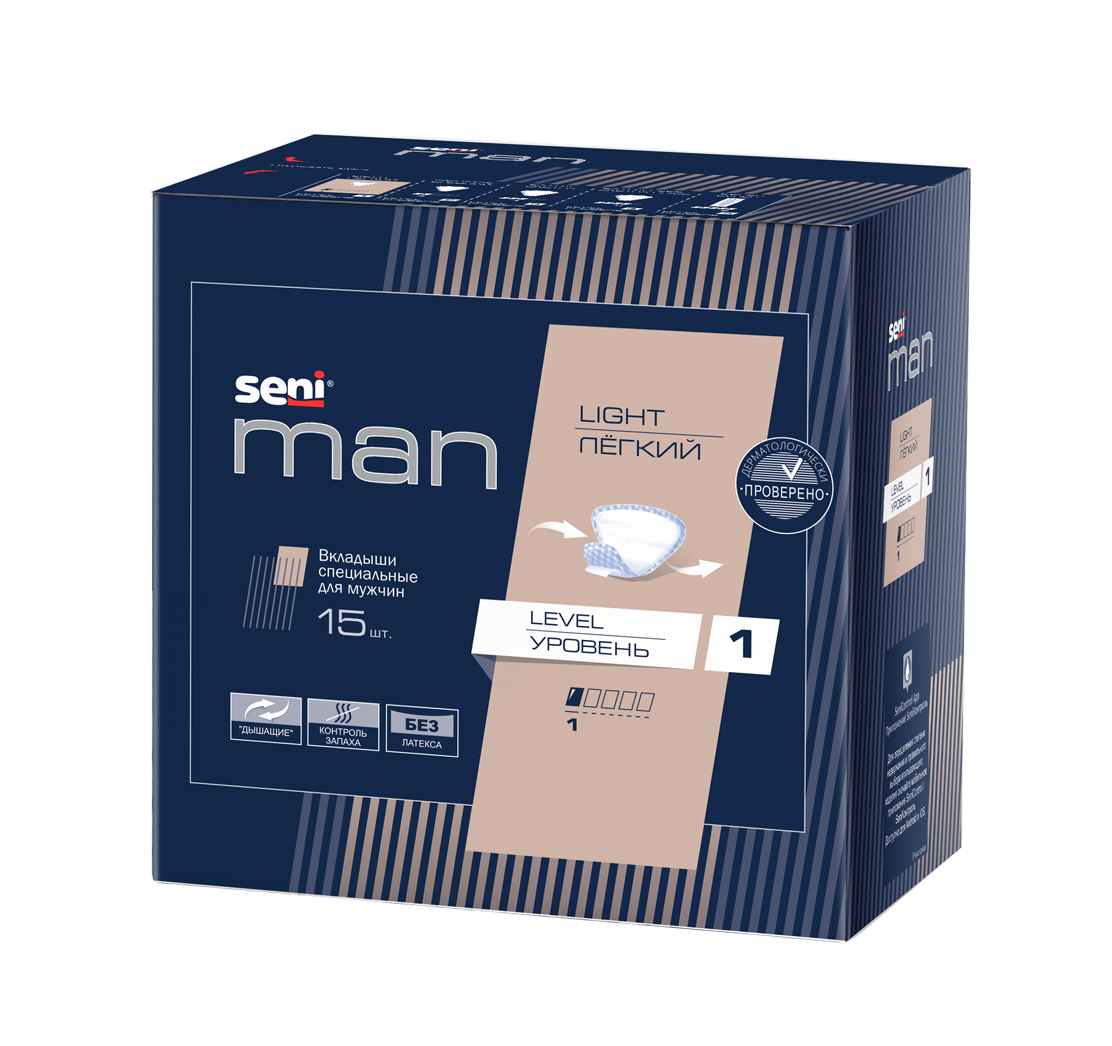 Прокладки для мужчин Seni Man Light Level 1 обеспечат комфорт и надежную защиту в течение дня. Они специально разработаны для мужчин и подходят для ежедневного использования. Эти прокладки удобные, имеют анатомическую форму, незаметны под одеждой. Их впитываемость — 1 капля, поэтому они подходят для надежной защиты при легком недержании.