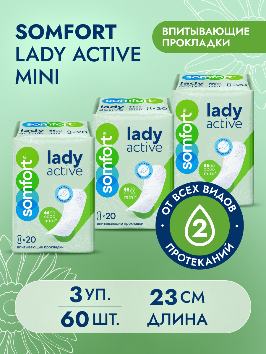 Somfort Lady Active Mini (СОМФОРТ Леди Актив Мини) — это компактные урологические прокладки, предназначенные для женщин с легкой формой недержания или капельными выделениями. Они обеспечивают надежную защиту сразу по трем направлениям: предотвращают протекания, изолируют влагу и эффективно борются с неприятным запахом. Впитывающий слой содержит гранулы суперабсорбента, которые мгновенно впитывают жидкость и удерживают ее внутри, не позволяют влаге просочиться наружу и нейтрализуют запах.