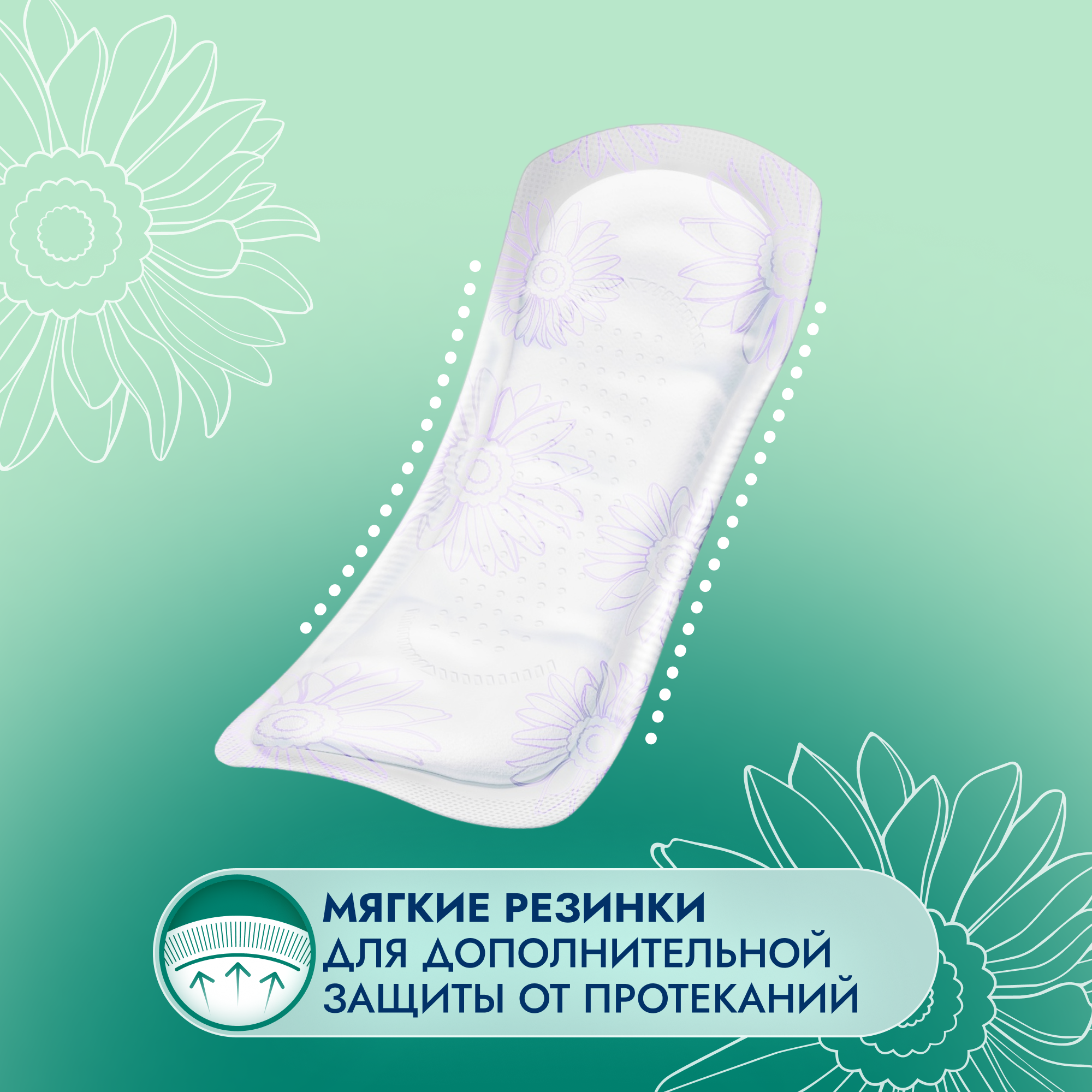 Боковые эластичные вставки помогают прокладке сохранять форму и дополнительно защищают от протеканий. Ультрамягкая поверхность изделия обеспечивает бережный уход за кожей и создает ощущение комфорта в течение всего дня. В составе отсутствуют ароматизаторы, отдушки и латекс, что снижает риск аллергии и делает прокладки подходящими для чувствительной кожи.
